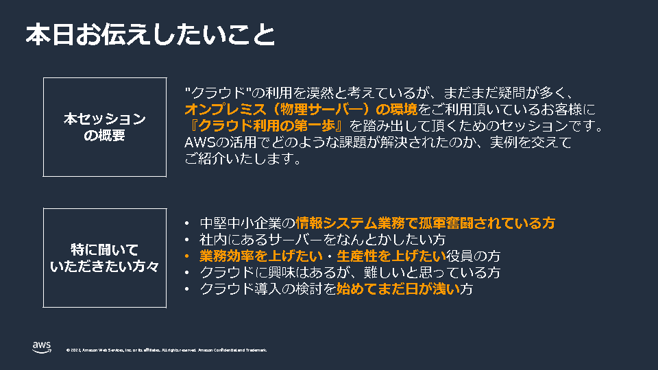 AWS利用による中堅・中小企業のIT課題解決のヒント・事例をご紹介