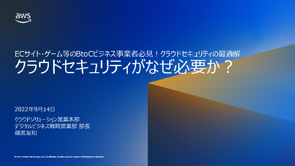 そこで本セミナーでは、セキュリティ改善の取り組みに役立つAWSサービスを紹介するとともに、導入や運用のポイントなども交えて解説します。