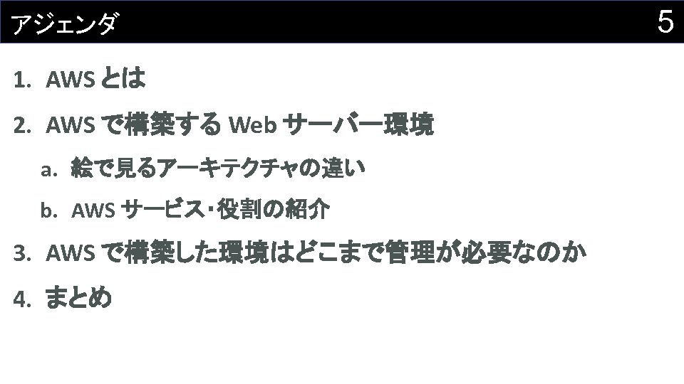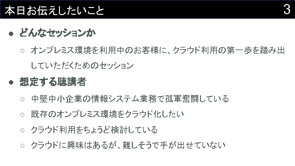 本セミナーでは、ここまで挙げたAWS導入時の課題や導入後の不安を払拭するための方法を解説します。
