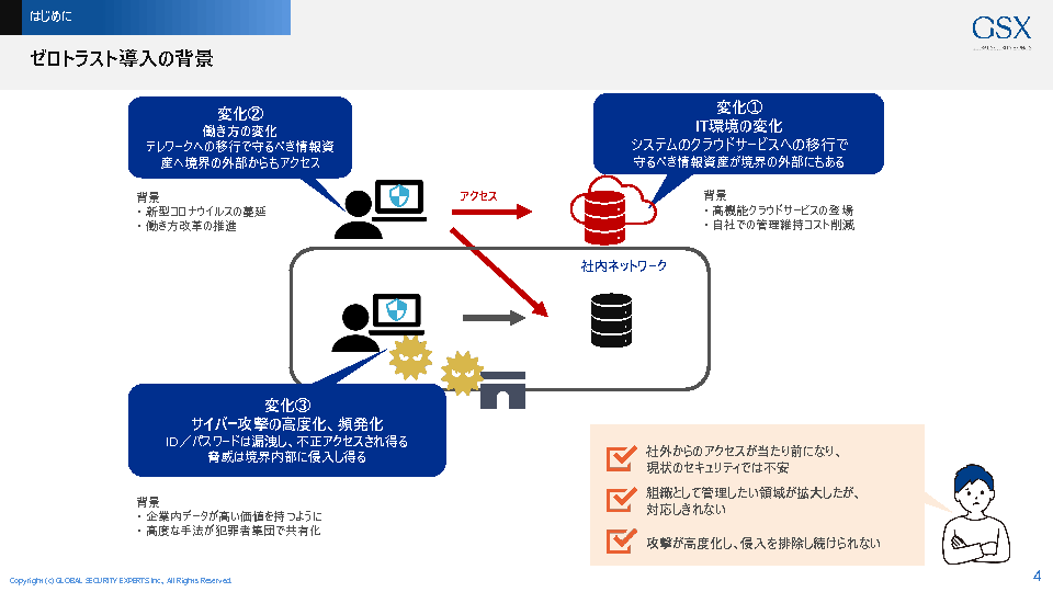 実際、ゼロトラストの導入企業は人的リソースやIT予算のある大規模な企業が先行しています。中堅企業などの多くの企業が、必要性を感じてはいるものの移行を決断できていないのが現状です。