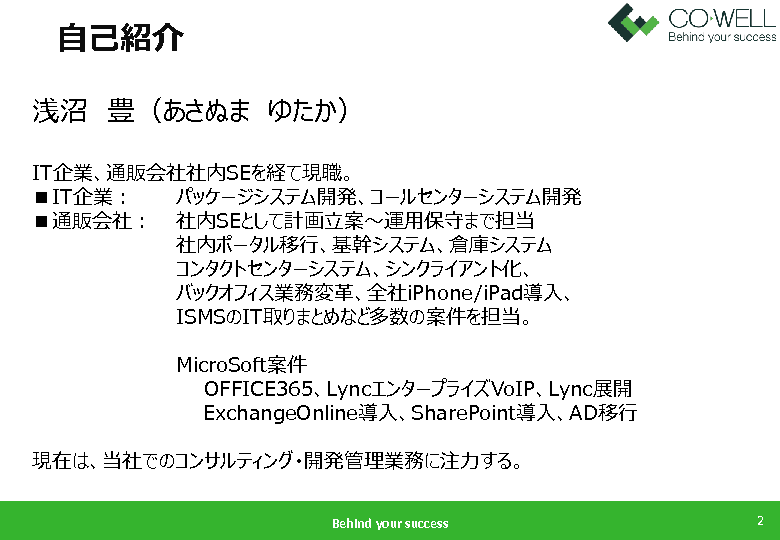 コウェル グローバルエンジニアリング部 ビジネスソリューション課課長 浅沼 豊
