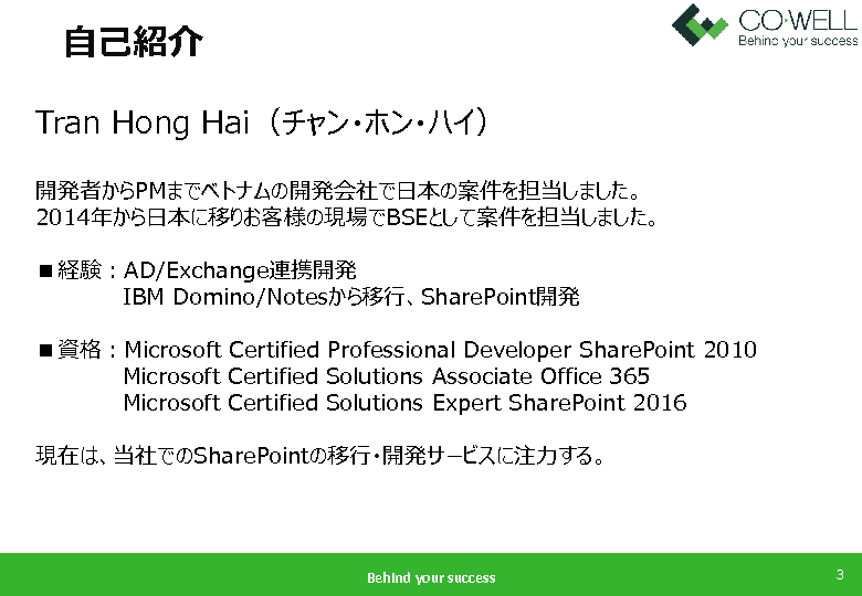 コウェル グローバルエンジニアリング部 ビジネスソリューション課 チャンホン・ハイ