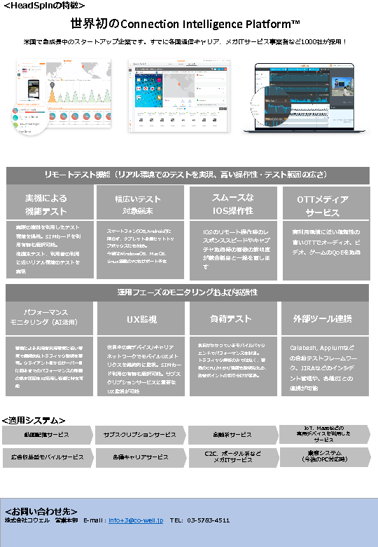 本セミナーでは「GAFA」等の世界を席巻する企業が、サービスのモニタリングに採用する「HeadSpin」の魅力と採用事例をご紹介し、どのようにして「より快適なユーザー体験」を継続して利用者に提供しているかを解説してまいります。