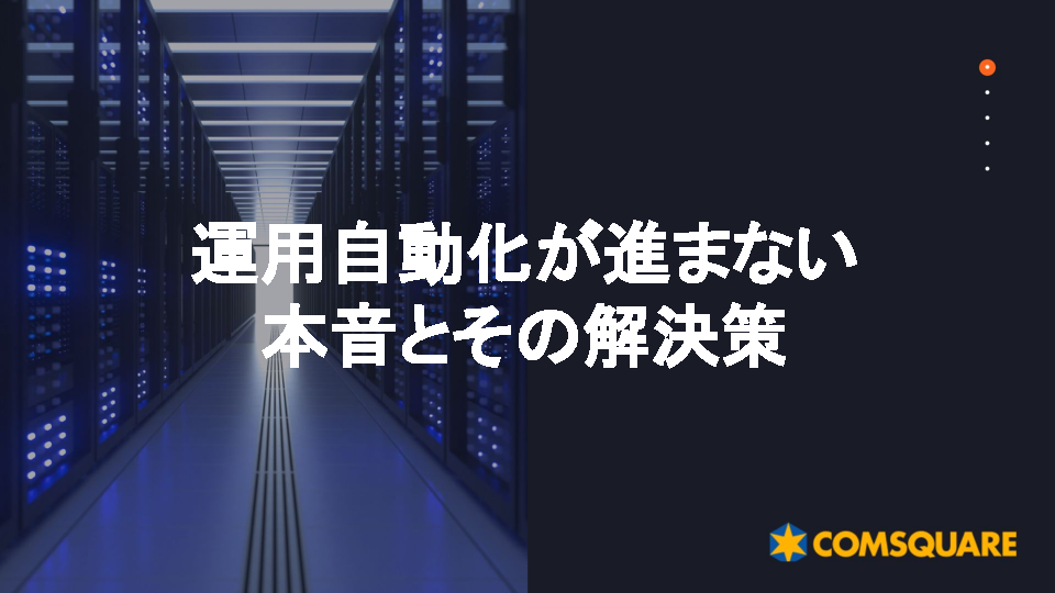 本セミナーでは運用自動化プラットフォームを自社で開発し、数多くの運用自動化支援を行ってきた株式会社コムスクエアが現場のリアルな声から挙がってきた運用自動化を実現するにあたっての障壁とそれを解決する手法を3つの観点からご紹介致します。