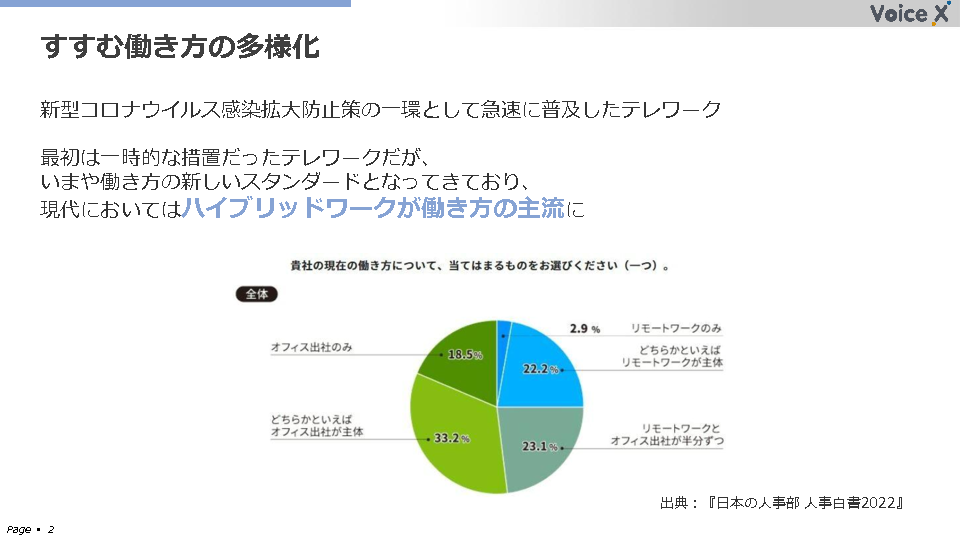 オフィスワークとテレワークを組み合わせたハイブリッドワークへのシフトが進み、働き方が多様化