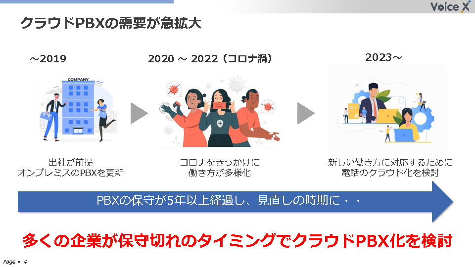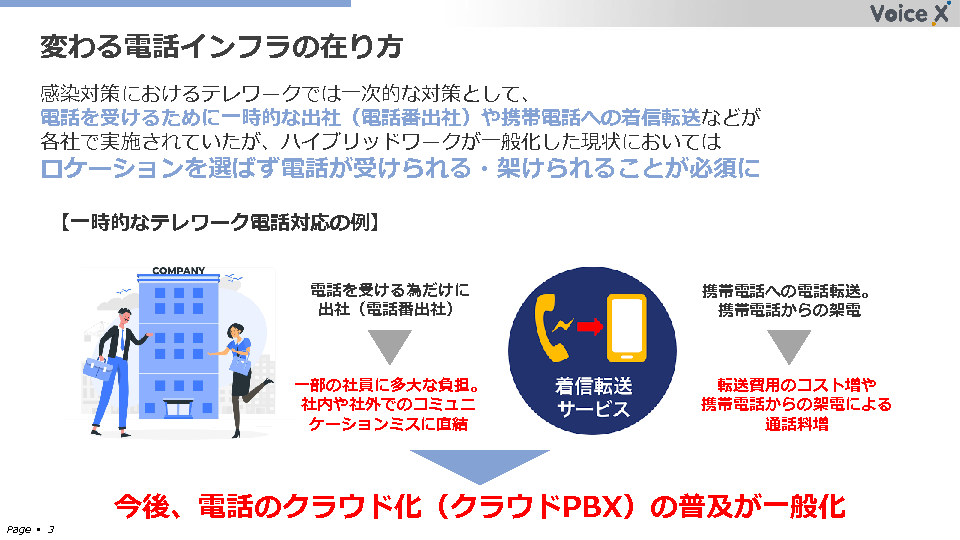 また、同社開発のクラウドPBX「Voice X(ボイスクロス)」の特徴や独自の機能などについてもご紹介する予定です。