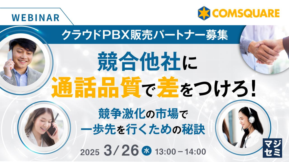 13:05~13:45 【クラウドPBX販売パートナー募集】競合他社に通話品質で差をつけろ!~競争激化の市場で一歩先を行くための秘訣~