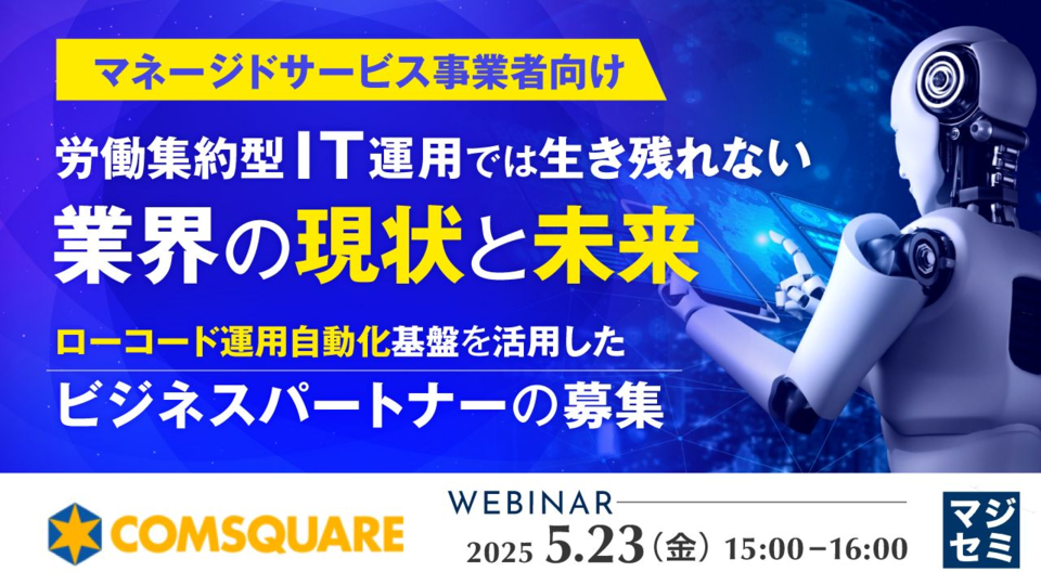 15:05~15:45 【マネージドサービス事業者向け】労働集約型IT運用では生き残れない、業界の現状と未来 ~ローコード運用自動化基盤を活用したビジネスパートナーの募集~