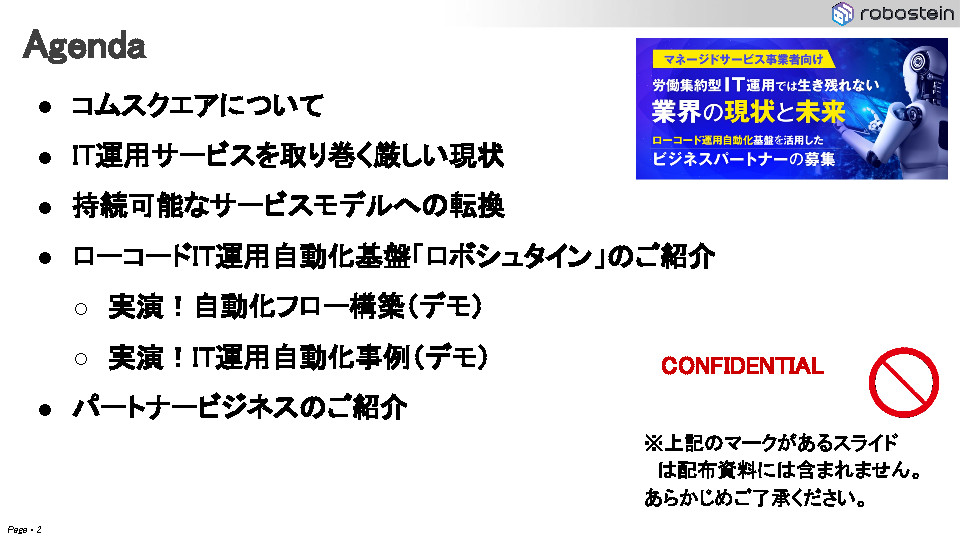 また、ロボシュタインを自動化基盤とした自社ブランドでのマネージドサービス展開などを実現しているインテグレーションパートナー各社の活用事例を通じて、具体的なビジネス展開のヒントや、支援内容の一端をご覧いただきます。