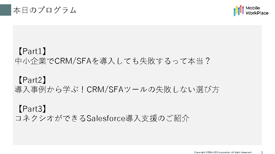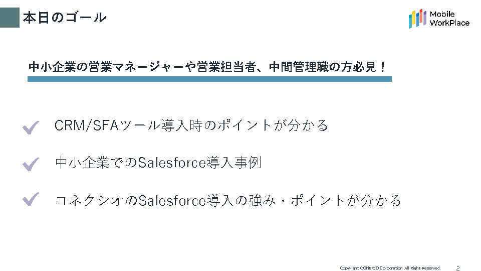 本セミナーでは、たった9人の営業チームがSalesforceを導入した理由や導入前の課題・解決方法について詳しくお伝えします。
