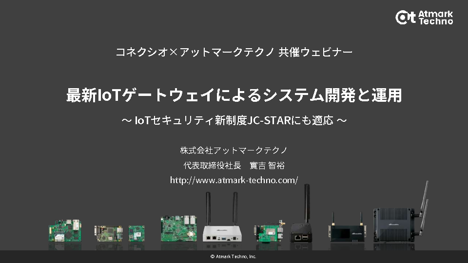 15:05~15:45 「最新IoTゲートウェイによるシステム開発と運用 ~IoTセキュリティ新制度JC-STARにも適応~」(アットマークテクノ)