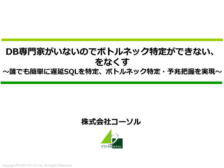 14:05~14:45 「DB専門家がいないのでボトルネック特定ができない」をなくす〜誰でも簡単に遅延SQLを特定、ボトルネック特定・予兆把握を実現〜