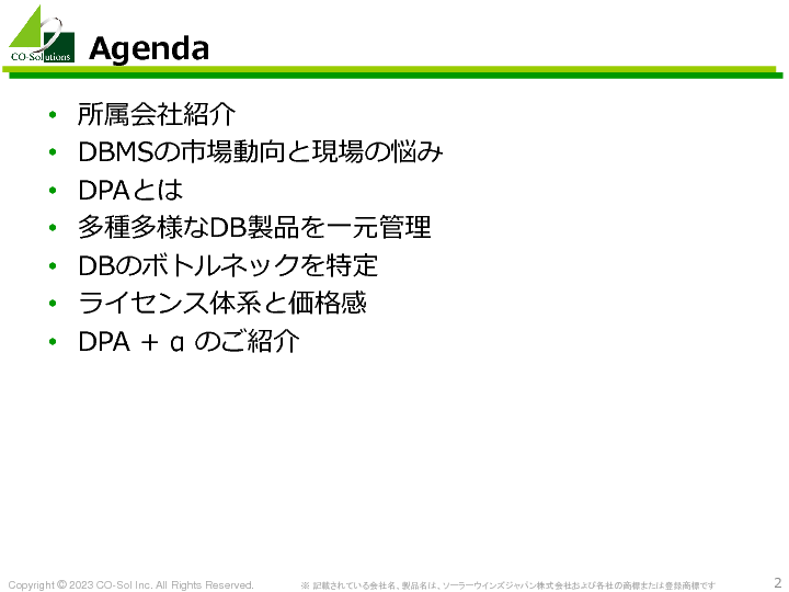 本セミナーでは、DB専門家がいない状況でも簡単にボトルネックを特定して遅延SQLの分析ができ、さらにマルチ環境・マルチデータベースの監視業務を効率化する一元管理ソリューション「Database Performance Analyzer (DPA)」を解説します。