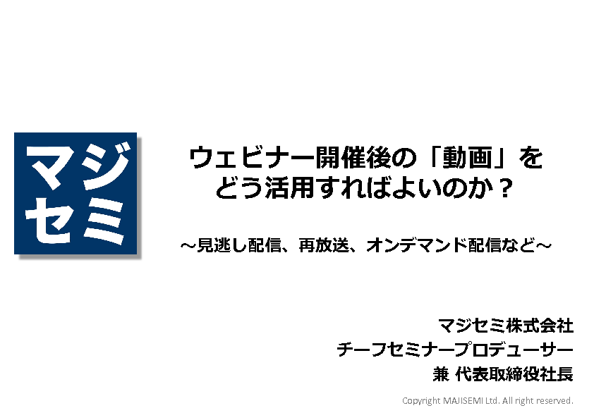 ほんどの企業が、ウェビナー開催後の動画を「放置」しているのではないでしょうか。
