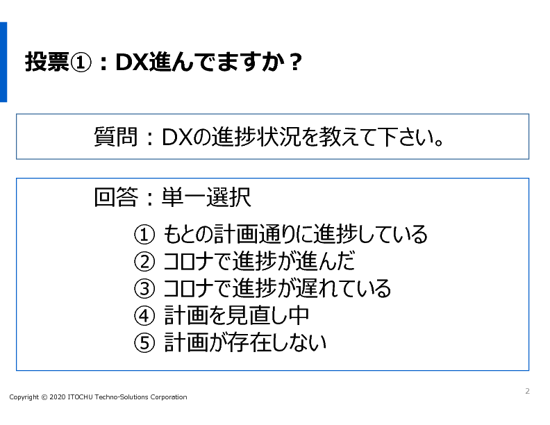 一方、昨今のコロナ事情による厳しい経済環境下において、DXならびに企業のIT戦略自体や、ワークスタイルも、ニューノーマルに対応した見直しを図ると同時に、状況に応じた対応が必要になると考えております。