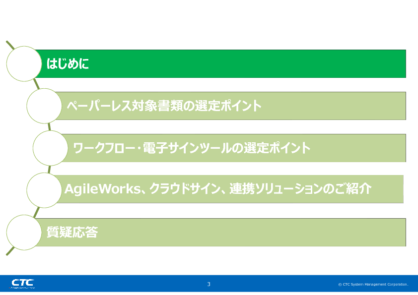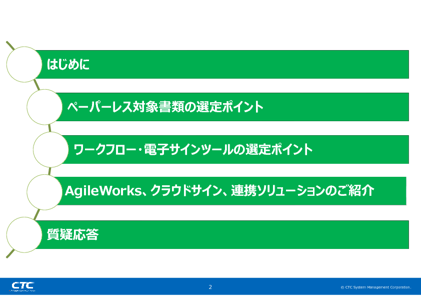 ワークフローシステムのAgileWorks(アジャイルワークス)と、クラウド型電子契約サービスのクラウドサインを連携した、CTCシステムマネジメント社のペーパーレスソリューションについても紹介しますので、ぜひご参加ください。