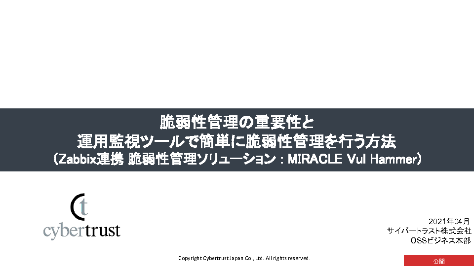 そこで今回のセミナーでは、脆弱性管理の重要性について解説するとともに、脆弱性管理の工数を効率化する解決策として、運用監視ツールZabbixに脆弱性管理の機能を追加する方法について解説します。