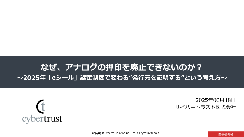 13:05~13:45 なぜ、アナログの押印を廃止できないのか? ~2025年「eシール」認定制度で変わる“発行元を証明する”という考え方~