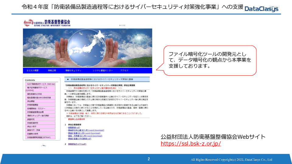 を満たすための暗号化・権限制御を「DataClasys」で実現し、情報を適切に管理する方法を事例を元にご紹介します。