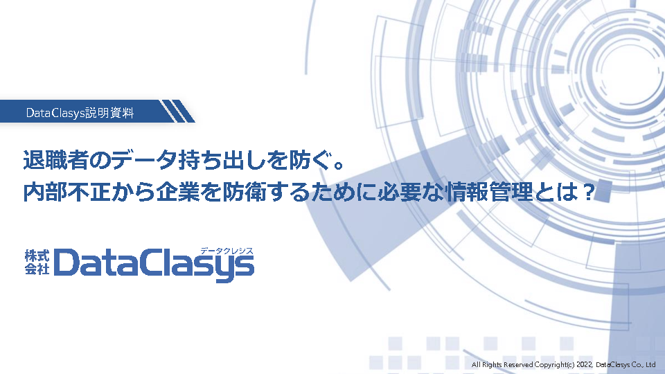 13:05~13:45 退職者のデータ持ち出しを防ぐ! 内部不正から企業を防衛するために必要な情報管理とは? ~持ち出し先で”閲覧不可”、営業秘密を適切に管理するための権限制御をDataClasysで実現~