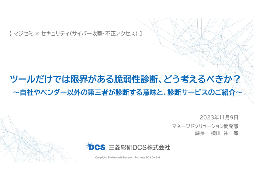 本セミナーでは専門家による高度なセキュリティ診断サービスをご紹介いたします。
