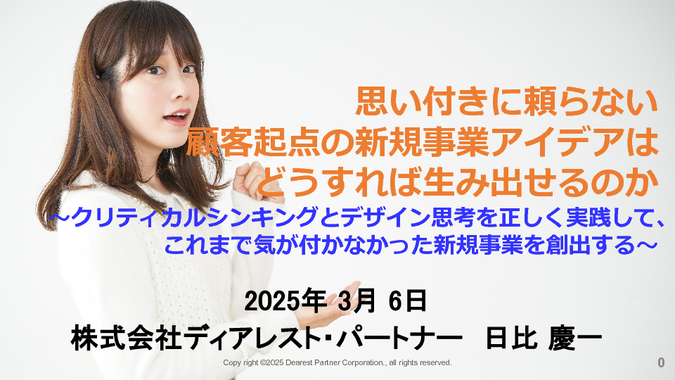 11:05~11:45 思い付きに頼らない顧客起点の新規事業アイデアはどうすれば生み出せるのか ~クリティカルシンキングとデザイン思考を正しく実践して、これまで気が付かなかった新規事業を創出する~