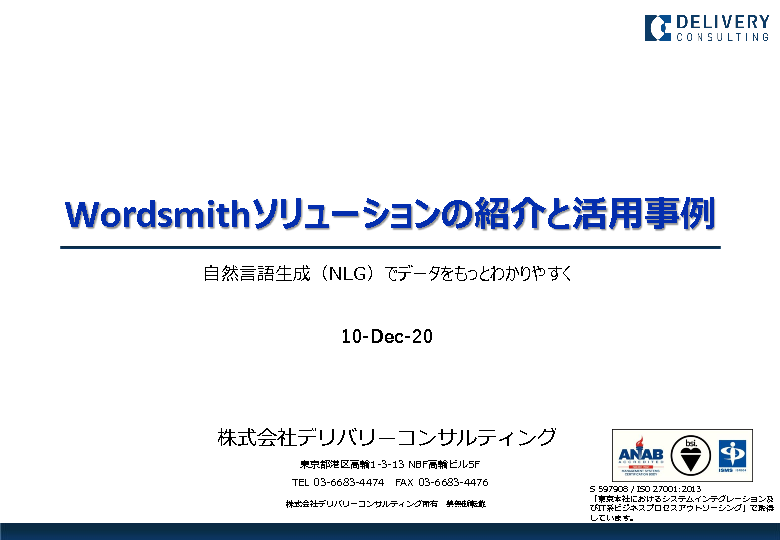 13:05~13:30 Wordsmithによる業務課題の解決、改善のご紹介