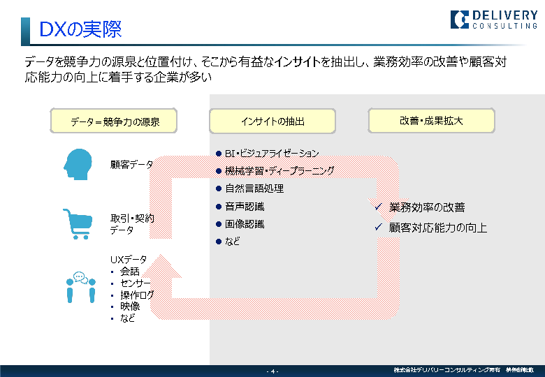 上記課題を解決する一つが、NLG(自然言語生成)の技術です。シンプルに言うと、「理解不能なデータ」を「理解可能な自然言語」に変換します。例えばダッシュボードのヴィジュアライゼーションに加え、データの中から何が重要で何をすべきか(インサイト)を文章で表現し、伝達することができます。