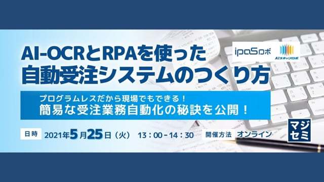 今回のセミナーでご紹介するAIスキャンロボ(AI-OCR)、RPA(ipaSロボ)は、受注業務の自動化に欠かせない現場でできるシステム開発を見据えた特徴を有しています。