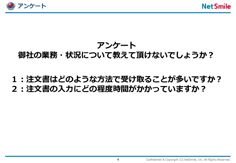 本セミナーでは、ネットスマイルの提供するAI-OCR「AIスキャンロボ」とデリバリーコンサルティングのセルフRPAツール「ipaSロボ」の製品紹介を行うとともに、伝票処理の自動効率化の事例、実践的な導入オペレーションなど、どうやって受注業務をシステム化できるか?をご紹介します。