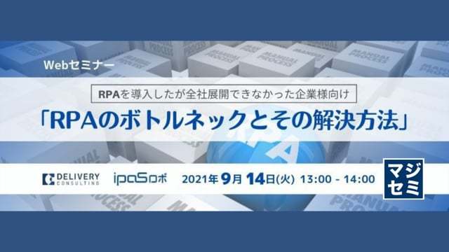 本セミナーでは、RPAを導入したが全社展開できなかった企業様向けに、RPAのボトルネックとその解決方法 を解説いたします。