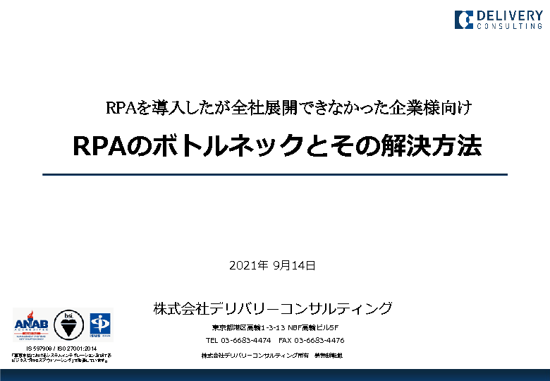 13:05~13:40 RPAを導入したが全社展開できなかった企業様向け「RPAのボトルネックとその解決方法」