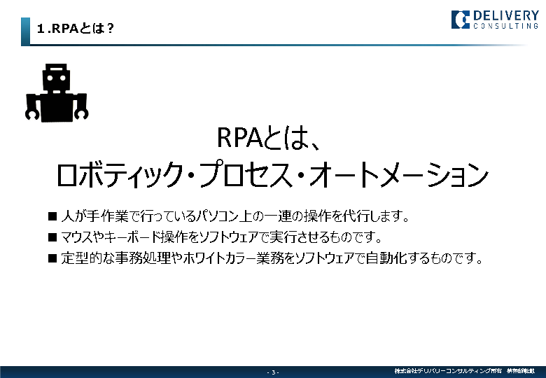 デリバリーコンサルティングが実際に支援している企業様でのRPA全社展開事例も共有します。