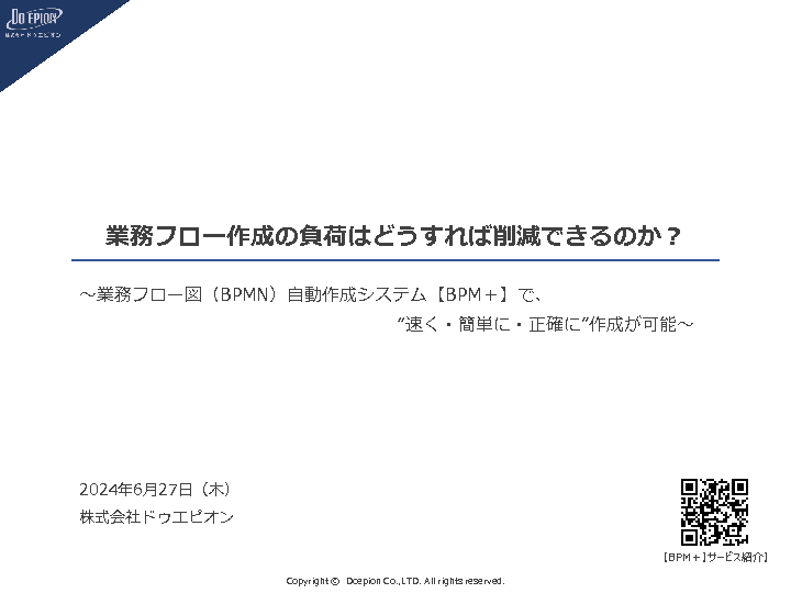 15:05~15:45 業務フロー作成の負荷はどうすれば削減できるのか? ~業務フロー図(BPMN)自動作成システム【BPM+】で、“速く・簡単に・正確に”作成が可能~