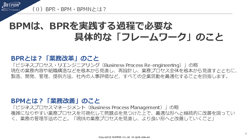 多くの企業で、BPR(ビジネス・プロセス・リエンジニアリング)、BPM(ビジネスプロセス・マネジメント)が推進されています。