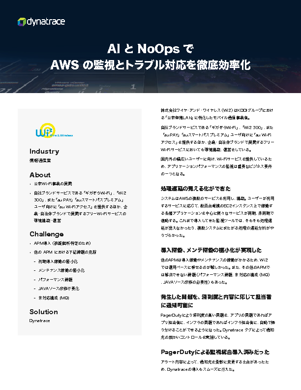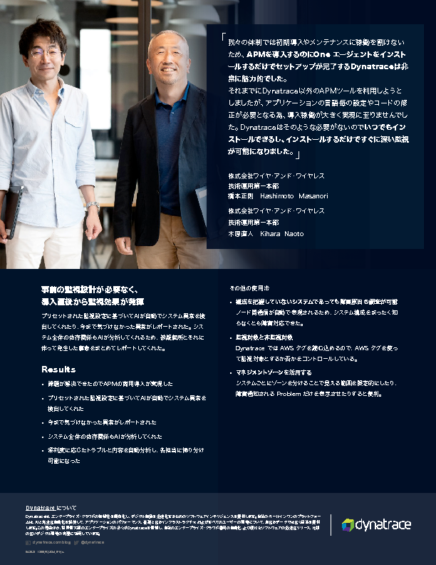 本セミナーでは、AIを活用することにより、1,000ノード以上のAWS運用を自動化した、ワイヤ・アンド・ワイヤレスとDynatraceの取り組みをご紹介します。