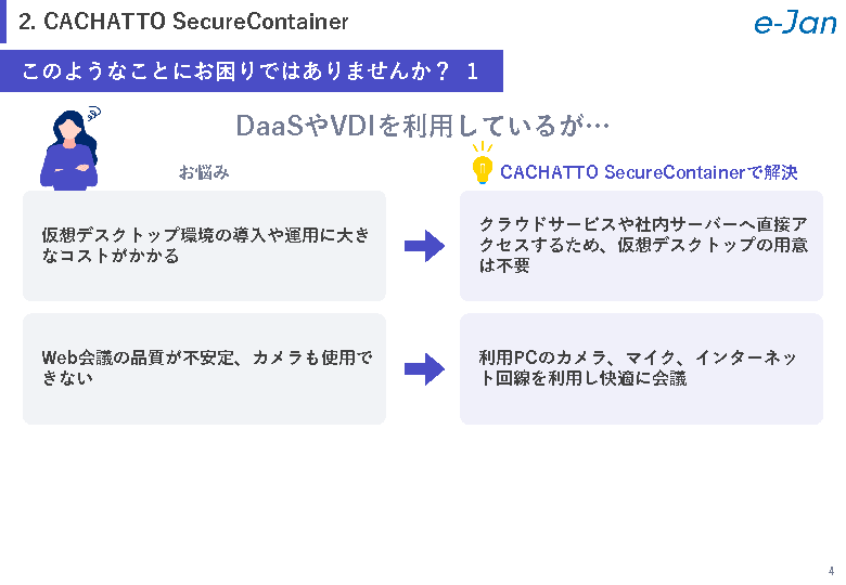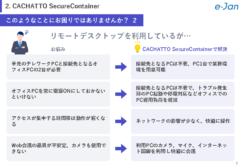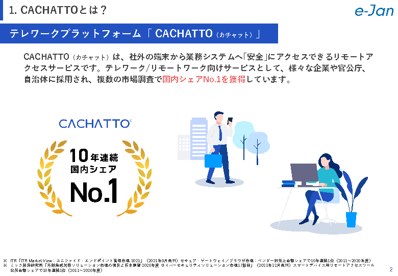 本セミナーでは、上記のような企業の課題について解説すると共に、それを解決する、コストパフォーマンスが優れた国内シェアNo.1のテレワークプラットフォーム「CACHATTO(カチャット)」をご紹介します。