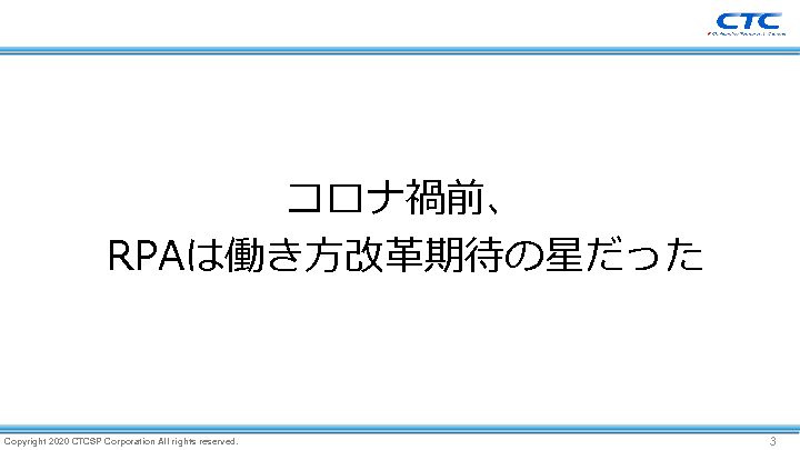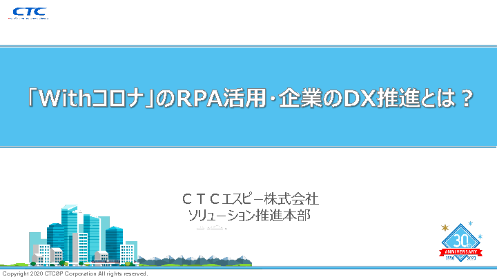 「Withコロナ」の時代とともにテレワーク常態化・企業内のデジタル化などより企業のDX推進は加速するものと考えられ、この数年注目を集めていたRPAも、更に活用が期待されております。