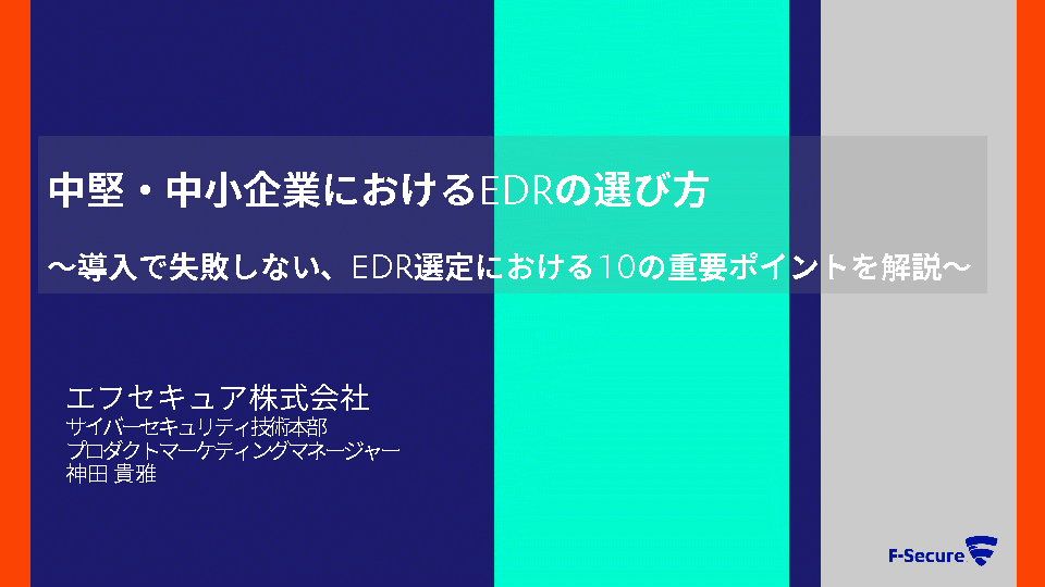 13:05~13:40 中堅・中小企業におけるEDRの選び方~導入で失敗しない、EDR選定における10の重要ポイントを解説~