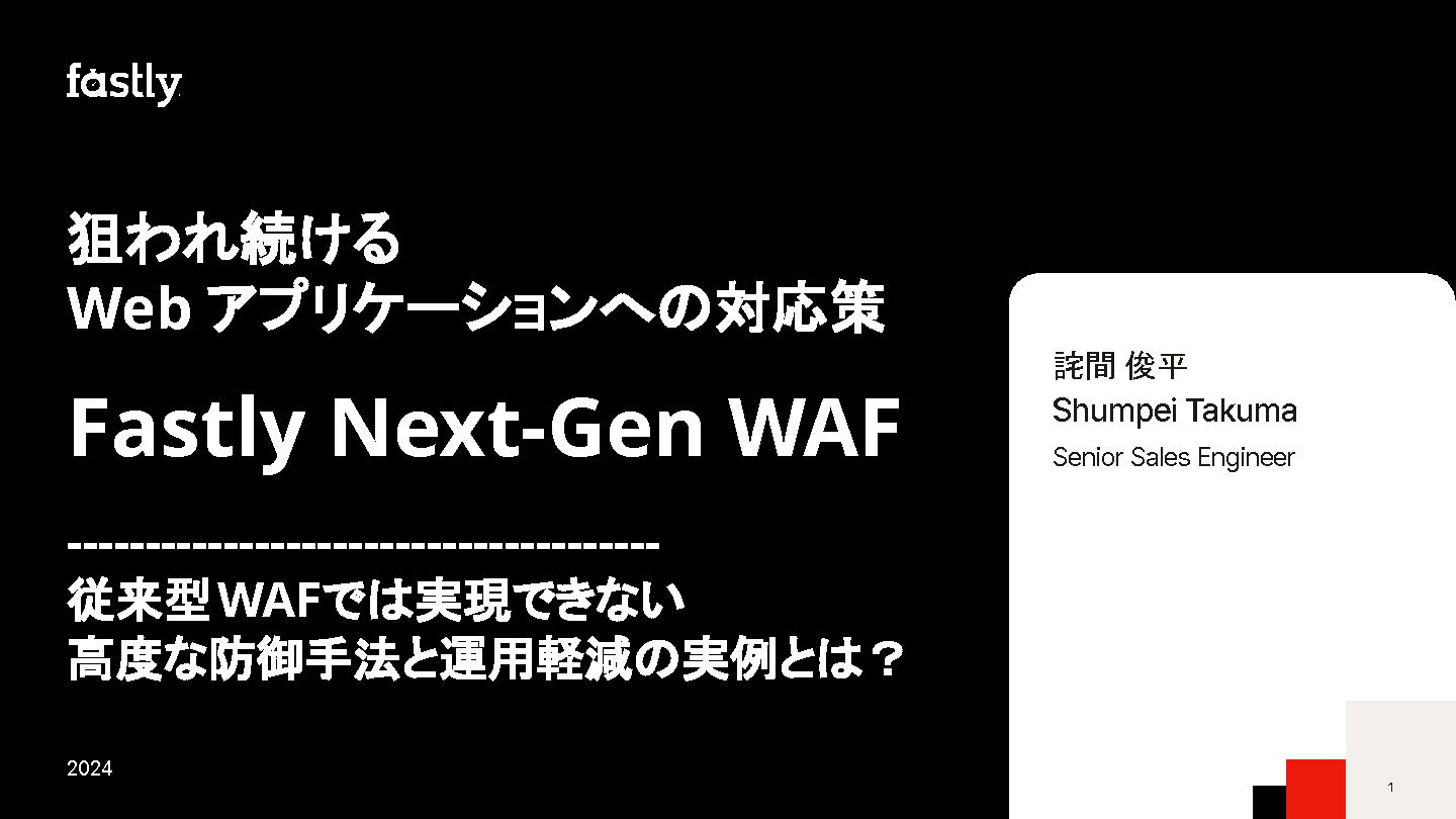 本セミナーでは、従来型WAFに関する課題を整理した上で、その解決策としてFastlyが提供する次世代WAF「Fastly Next-Gen WAF」をご紹介します。独自の攻撃検知メカニズムによって誤検知を排除し、Webアプリケーションに対する多様な攻撃に対するリアルタイムな脅威の可視化と迅速な対応を可能にします。