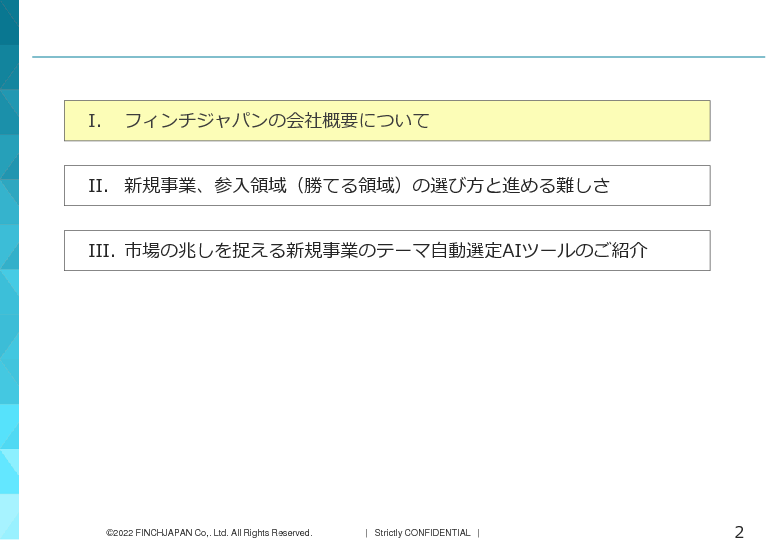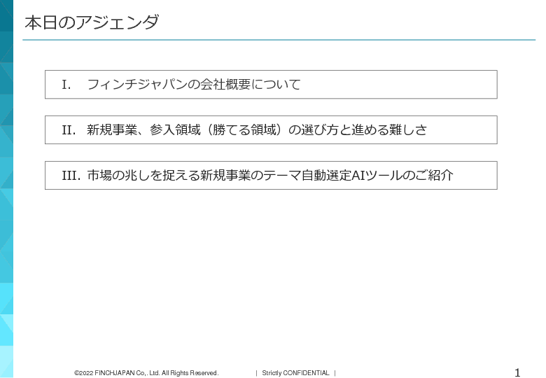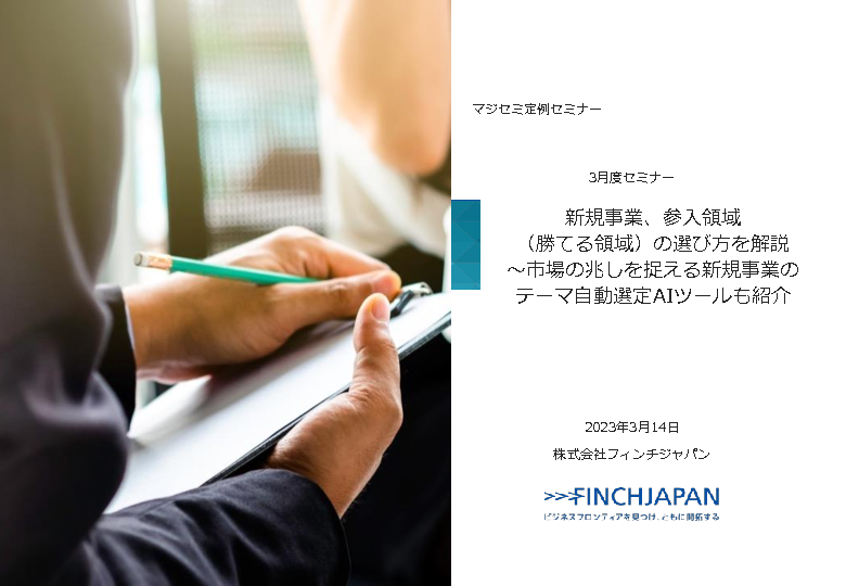 10:05 ~ 10:45 新規事業、参入領域(勝てる領域)の選び方を解説 ~市場の兆しを捉える新規事業のテーマ自動選定AIツールも紹介~