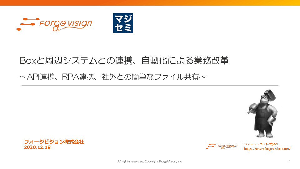 13:05~13:40 Box-APIを活用した業務改革・ForgeVisionの提供するサービス概要