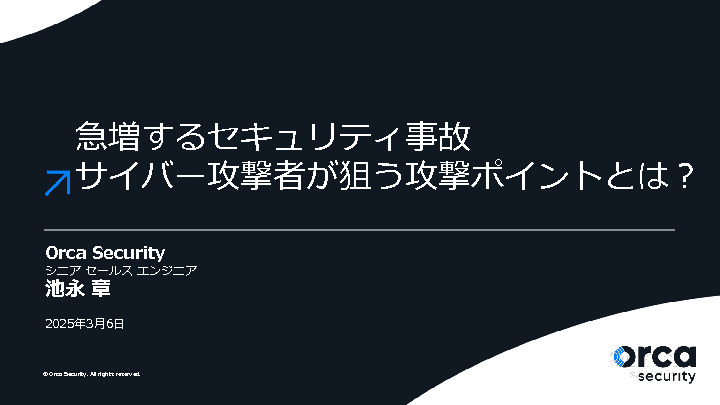 本セミナーでは、CNAPP市場のリーダー的存在である「Orca Security」が登壇。最新の動向を交えて、サイバー攻撃者が狙う攻撃ポイントを解説します。