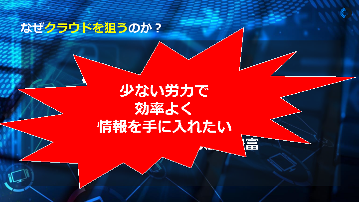 15:10~15:25 急増するクラウド環境のセキュリティ事故、サイバー攻撃者が狙う攻撃ポイントとは?