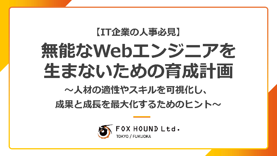 【IT企業の人事必見】無能なWebエンジニアを生まないための育成計画 ~人材の適性やスキルを可視化し、成果と成長を最大化するためのヒント~