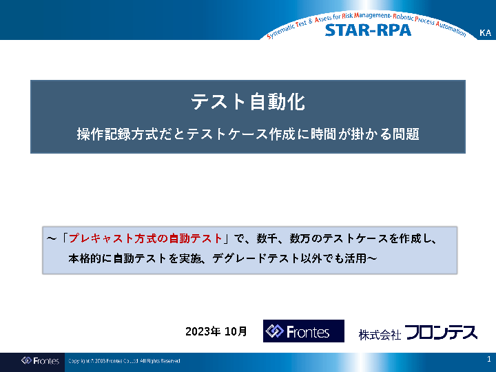 本セミナーでは、このようなテスト自動化における課題について説明するとともに、この課題を解決する「プレキャスト方式」について解説します。