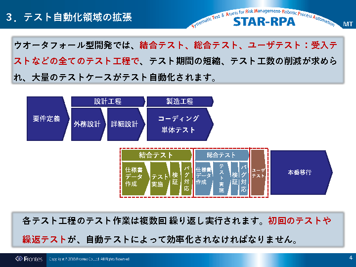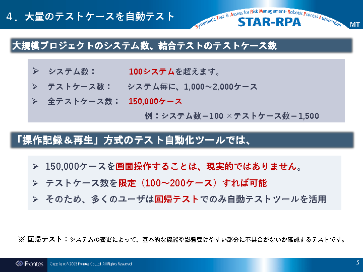 このため、実質的には「デグレードテスト(ノンデグレードテスト/リグレッションテスト)」の場面でしか使われていないのが実情であり、本来効率化したいシステム開発フェーズでは活用できていません。