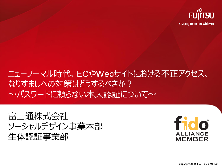 16:05~16:40 ニューノーマル時代、ECやWebサイトにおける不正アクセス、なりすましへの対策はどうするべきか?~パスワードに頼らない本人認証について~