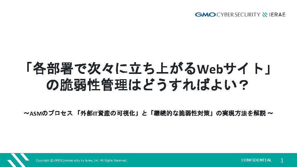 15:05~15:45 「各部署で次々に立ち上がるWebサイト」の脆弱性管理はどうすればよいのか?~ASMのプロセス 「外部IT資産の可視化」と「継続的な脆弱性対策」の実現方法を解説 ~