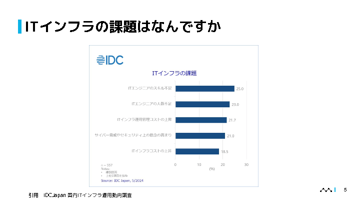 安定したサーバー運用は事業運営においてとても重要なポイントです。とりわけ情報通信業においては、顧客満足度の向上、ビジネス成長、そして企業の信頼を守るために、サーバー監視は欠かせません。しかし、その重要性を認識しつつも、多くの企業が適切な監視項目の選定や、大量のアラートへの対応、障害発生時の迅速な復旧を行っている中で、違和感や課題感を感じることはありませんか?これらの課題は、適切な改善スキームが構築されていない、あるいは監視ツールの活用が不十分であることが原因かもしれません。
